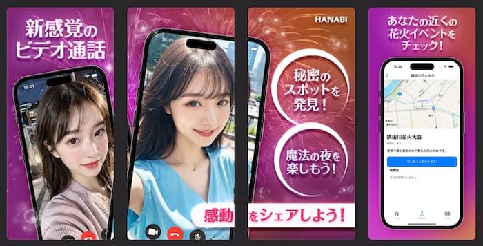 Hanabiは、公式では花火スポットを共有しながらビデオ通話を楽しめるアプリとして紹介されています。
